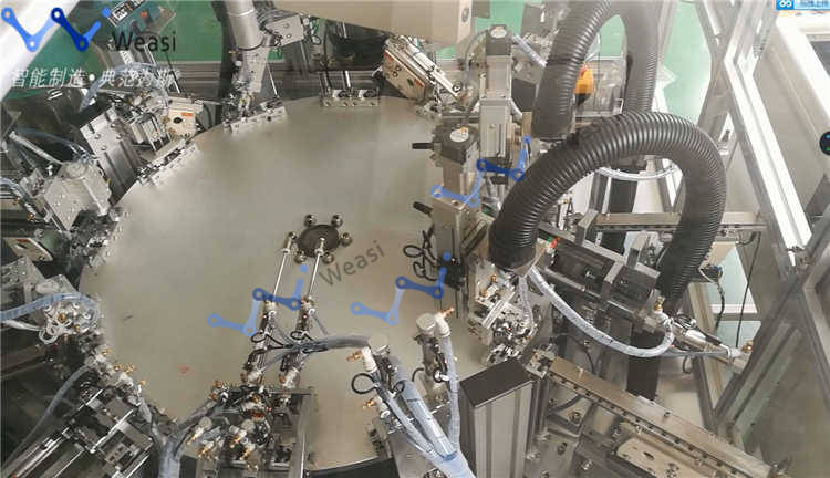 1, The machine adopts the turntable type structure assembly, parts feeding, feeding, assembly, testing, blanking system are fully automatic;