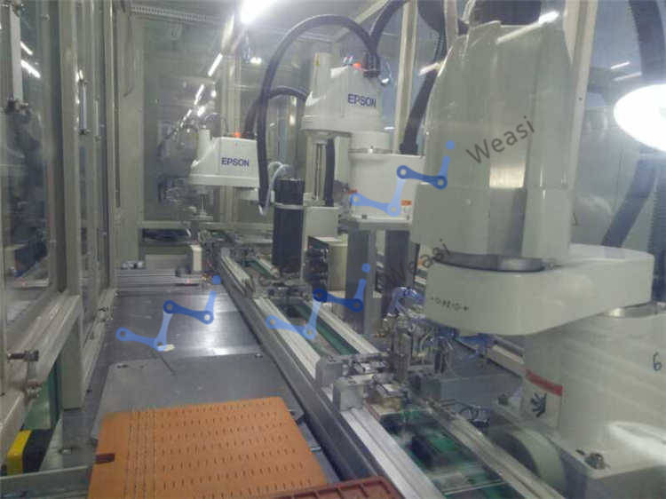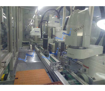 2, 7 four axis level key (section) robots for human-machine assistance of intelligent precision assembly application on the automatic assembly line, to achieve robot substitutions, reduce manufacturing costs, output doubled form;