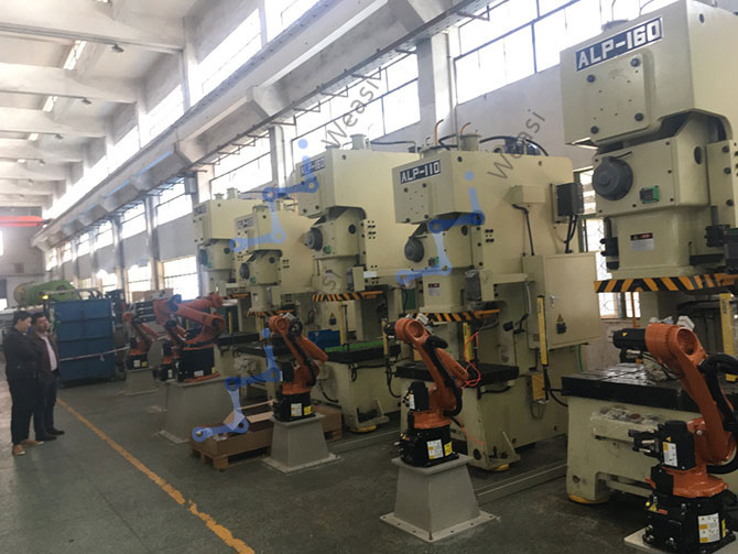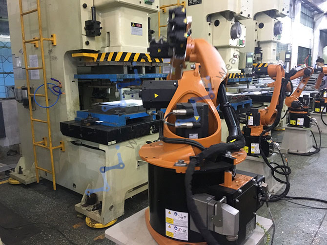 This project is mainly to develop a precision and efficient automatic stamping production line to achieve automatic stamping loading and unloading, and combined with the use of PLC and sensors, real-time perception and collection of the production line each station production of products and operating status, component status adjustment and optimization, to achieve self-fault diagnosis, can identify and isolate faults, users can online monitoring, fault prediction and diagnosis. Thus from the previous pure manual loading and unloading to automatic loading and unloading, manual operation reduced by 75%, effectively reduce labor costs and labor, production efficiency reached 7~8s/ piece, product output product pass rate increased to 99.9973%. The project scheme can be copied quickly, has demonstration in the punching line, and has broad market prospects.