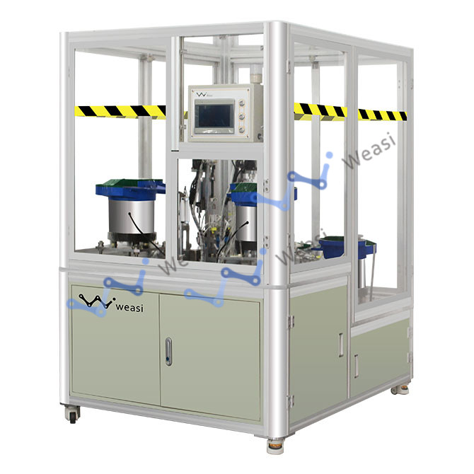 2, Automatic feeding of screw and hasp by vibrating plate, manual feeding of copper;